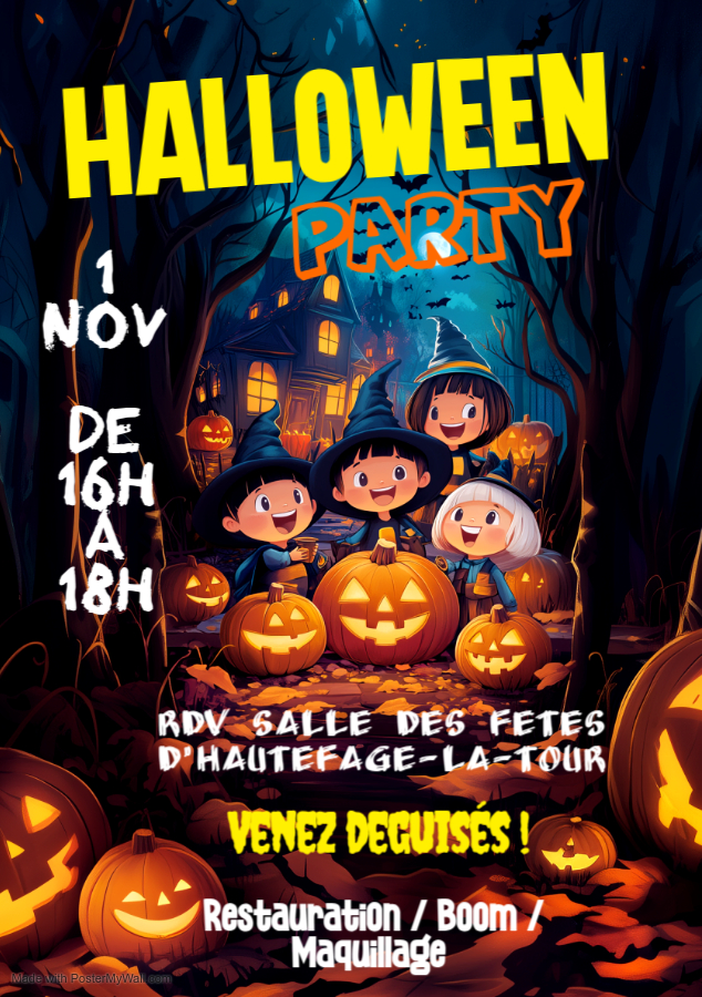 HALLOWEEN PARTY – Samedi 1er Novembre – 16h / 18h – Salle des fêtes de Hautefage la Tour